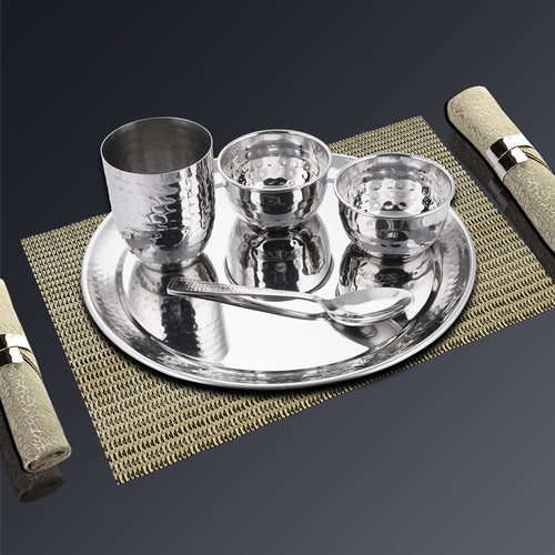 Stainless Steel Hammered Thali Set 28 CM Komcha