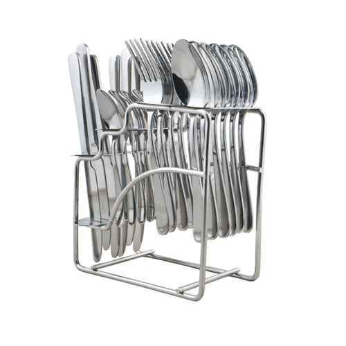 Stainless Steel 24 PCS Cutlery Set (6 Pcs Tea Spoon, 6 Pcs Dessert Spoon, 6 Pcs Dessert Fork and 6 Pcs Dessert Knife) with Stand Monika