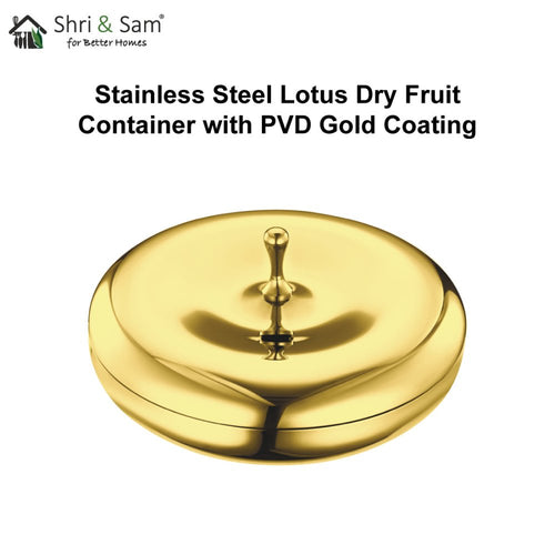 Stainless Steel Lotus Dry Fruit Container with PVD Gold Coating