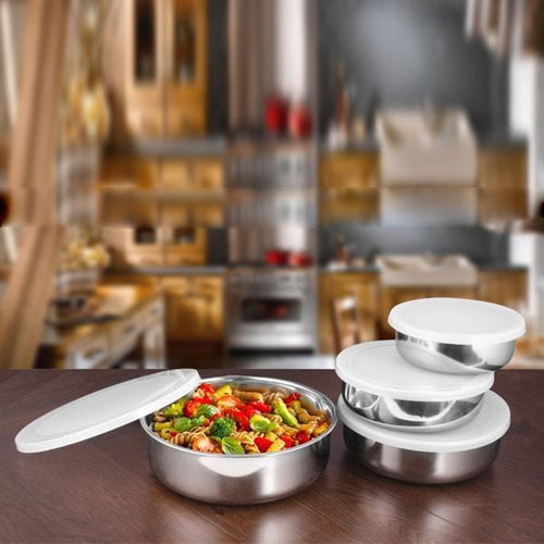 Stainless Steel 4 PCS Bowl with Plastic Lid