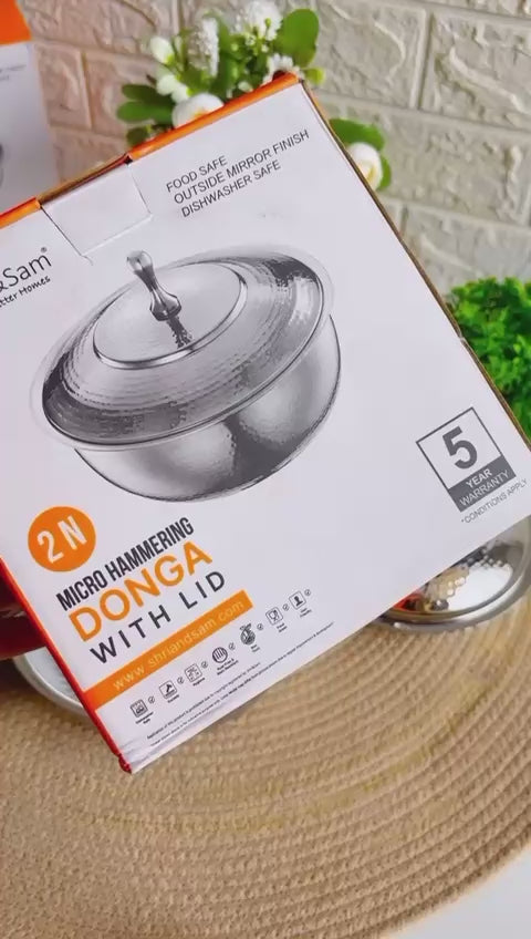 Stainless Steel Micro Hammered Donga with Lid