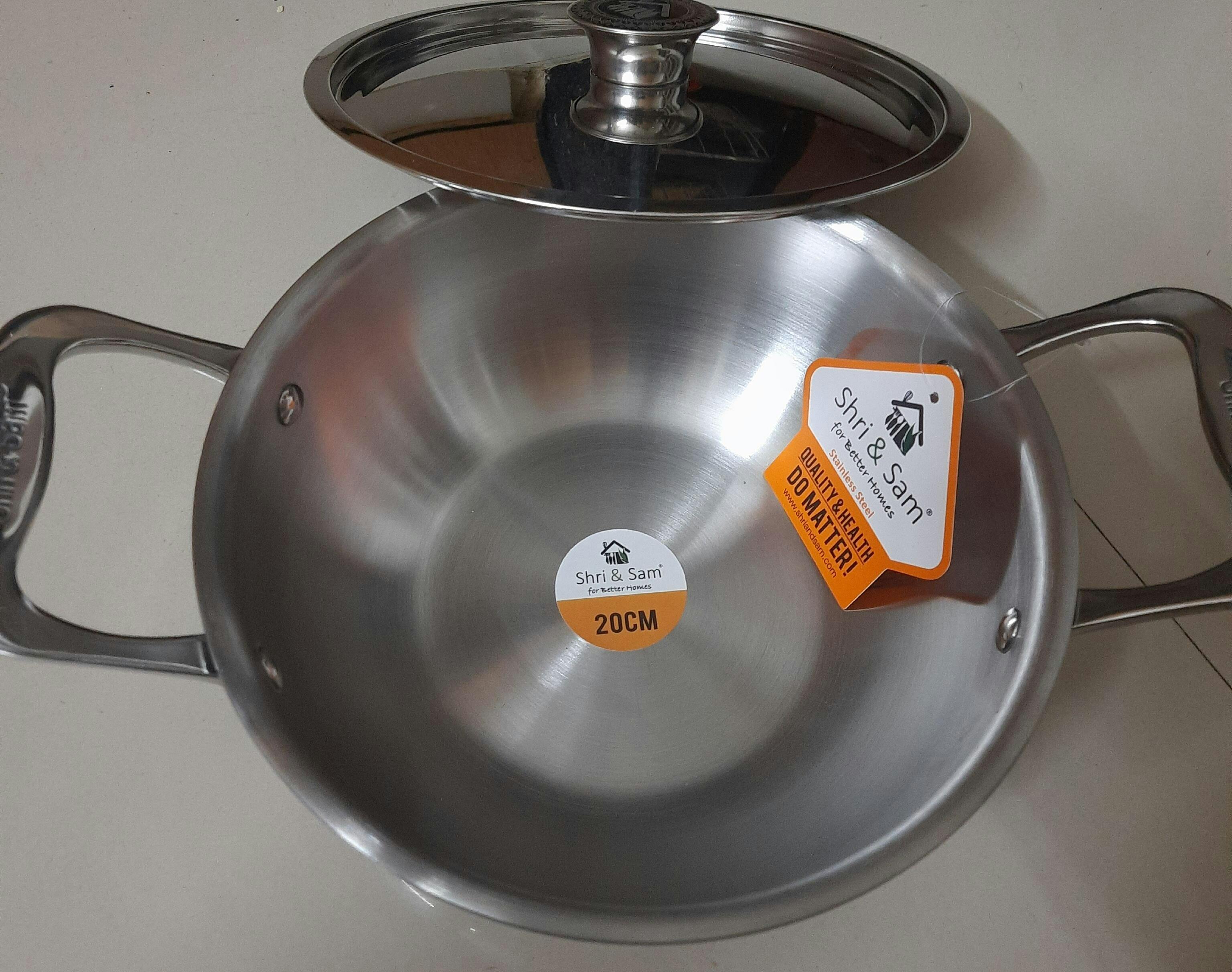 This Platinum Kadhai by Shri and Sam is made from premium quality stainless steel which is highly durable and extremely sturdy. This Kadhai is made from 430 Stainless steel series which is a perfect option for cooking on all types of heating sources. This Kadhai has a shiny finish which enhances the beauty of any type of kitchen countertop. This Kadhai has really sturdy handles that will not break or bend easily. This kadhai also comes with a shiny stainless steel lid which can help different styles of cooking.