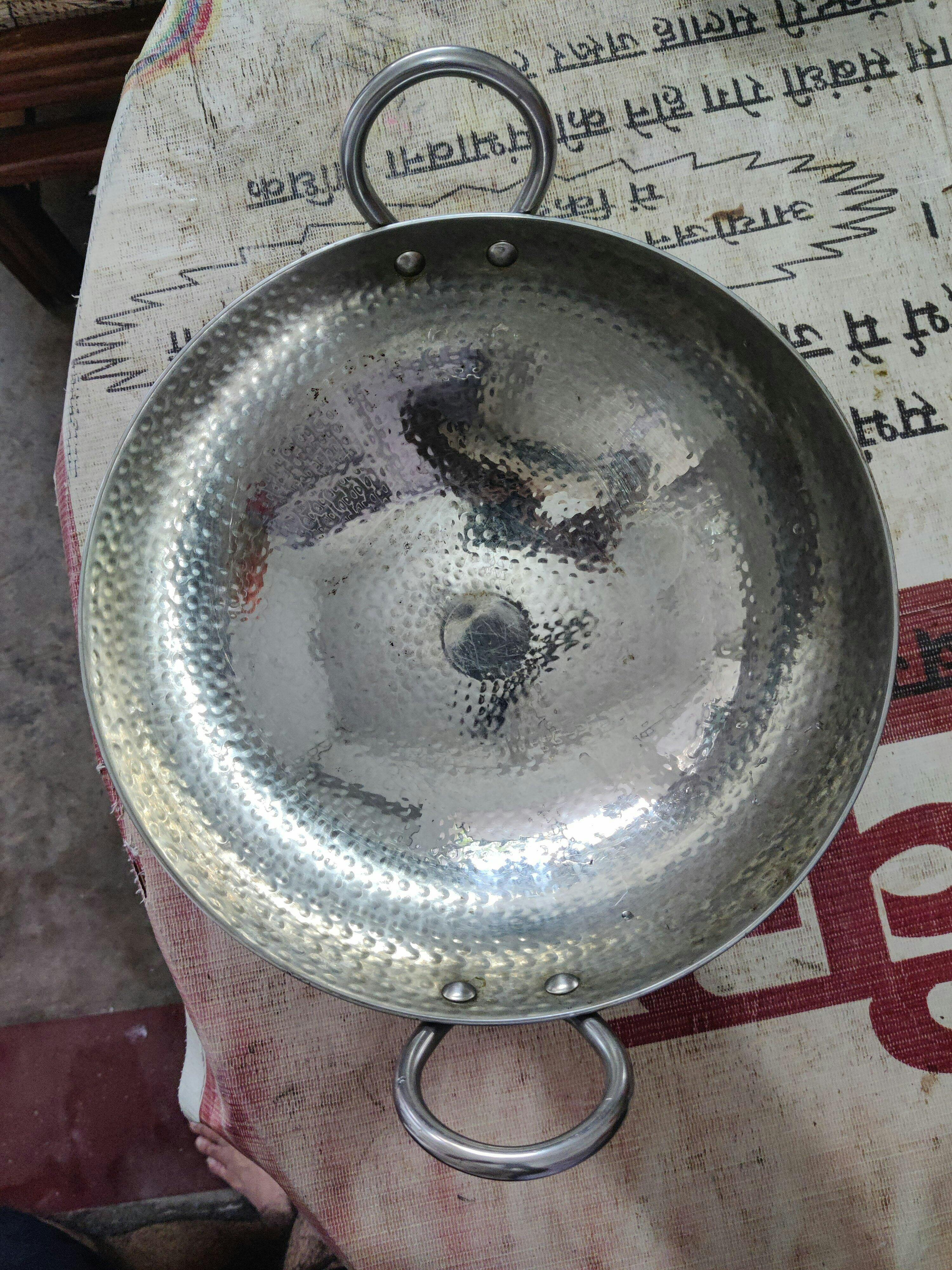 This Kadhai by Shri and Sam is made from premium quality stainless steel which is highly durable and extremely sturdy. This product has three layers, hence the name Triplica. The bottom layer is made from 430 Stainless steel series which is a perfect option for cooking on all types of heating sources. The middle layer is Aluminium which is a great conductor of heat, hence it will help you cook faster. The third layer and the topmost layer are made from 304 stainless steel series which is Food grade and Food Safe, which means it is extremely healthy for cooking. This Kadhai has a shiny finish which enhances the beauty of any type of kitchen countertop. This Kadhai has really sturdy handles that will not break or bend easily.